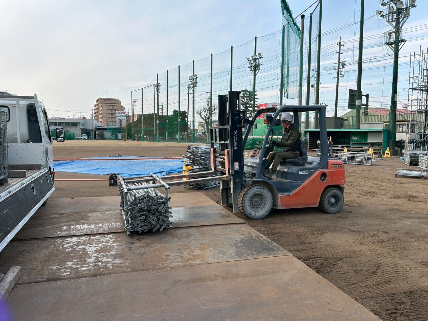 高層ビルやマンションまで、さまざまな現場で仮設足場の施工を行っています。